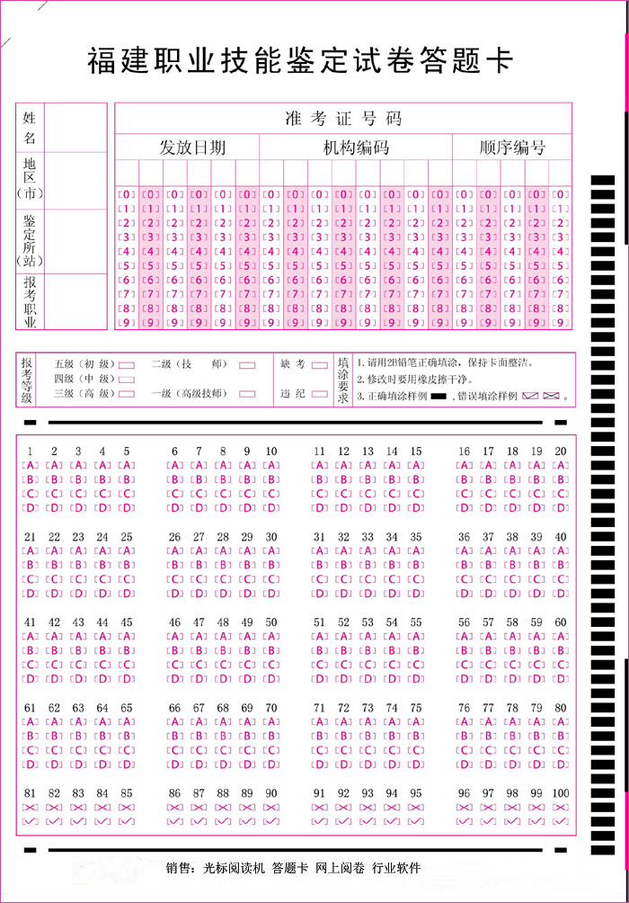 產(chǎn)品標(biāo)題:福建職業(yè)技能鑒定試卷答題卡