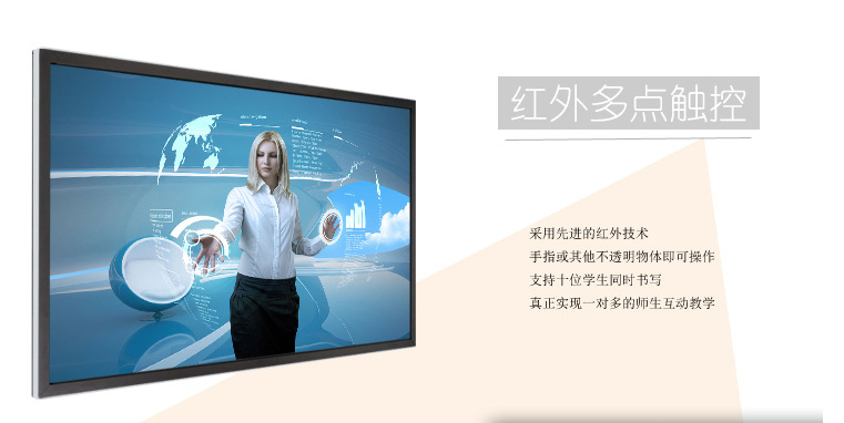 紅外觸摸精準(zhǔn)快速(延遲小于5毫秒),紅外多點(diǎn)觸摸技術(shù),免驅(qū)動(dòng),無(wú)需校準(zhǔn),抗強(qiáng)光干擾,人機(jī)互動(dòng)快速有效,支持手指等任何不透明物體書(shū)書(shū)寫(xiě)。