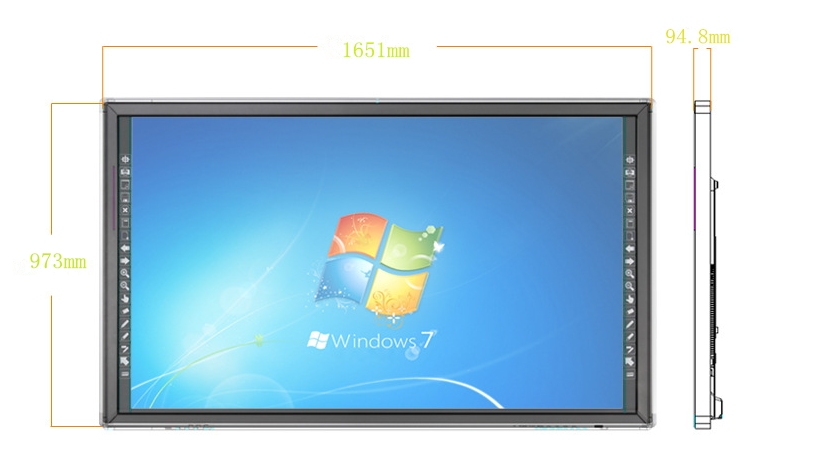 紅外觸摸精準快速(延遲小于5毫秒),紅外多點觸摸技術(shù),免驅(qū)動,無需校準,抗強光干擾,人機互動快速有效,支持手指等任何不透明物體書書寫。